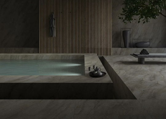 Поверхность: матовая, имитация под камень, травертин, сланец или гранит.