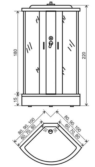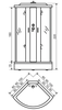 Передние стекла матовые, задние стенки СТЕКЛЯННЫЕ белые, полукруглый низкий поддон 15см + верхние - поворотные ролики с регулировочным винтом, нижние - поворотные ролики с кнопкой; с полкой на задней панели.
