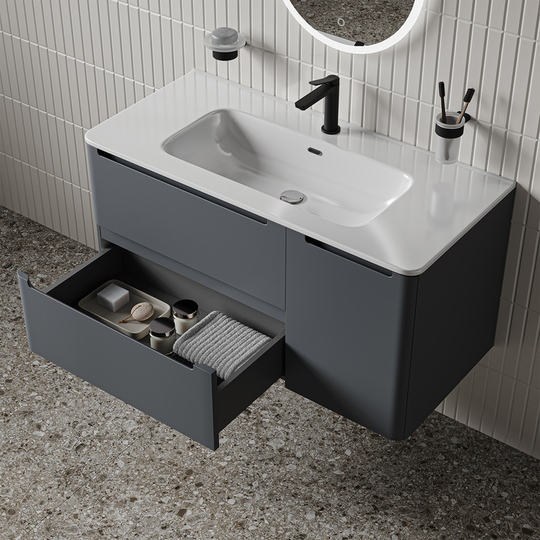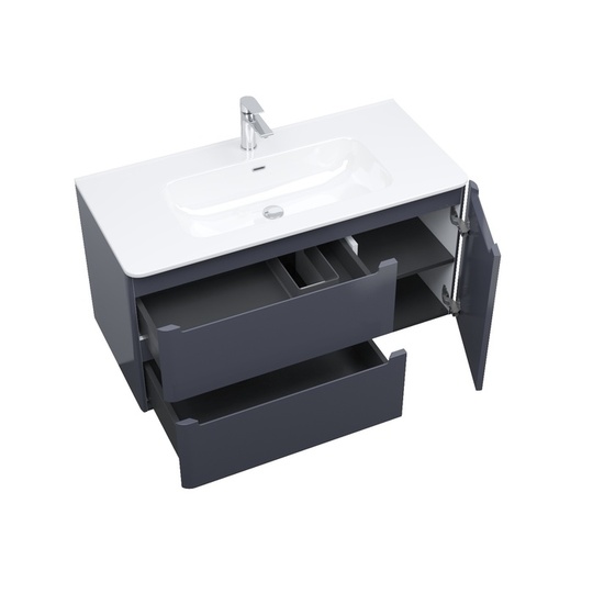 Два выдвижных ящика с механизмом плавного доведения, одна распашная дверца.