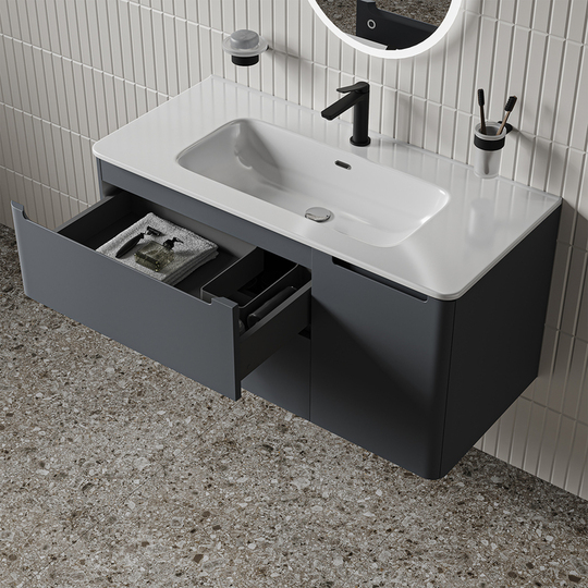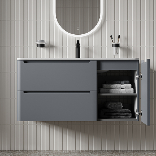 Фасад МДФ 19 мм в матовой эмали (окрашен с двух сторон): темно-серый фрезеровка.