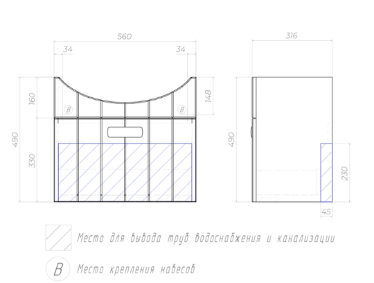Глубина - 316 мм