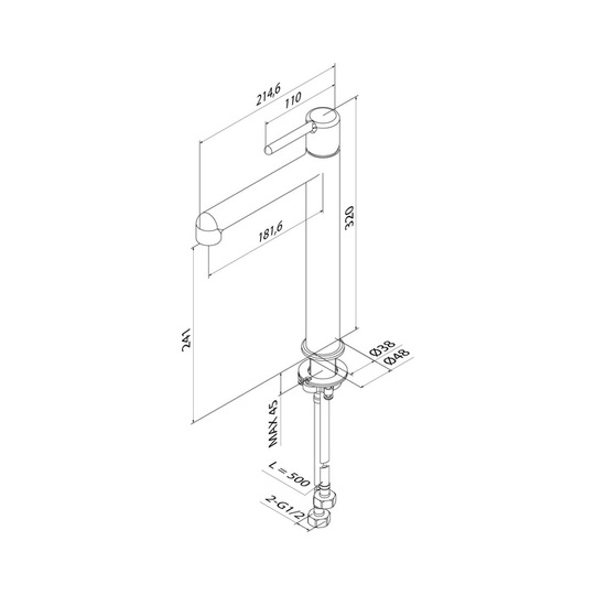 Подключение - Гибкая подводка из антибактериального материала PEX в оплётке из нержавеющей стали, M10 - 1/2, длина 500 мм