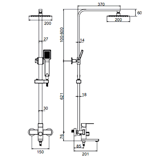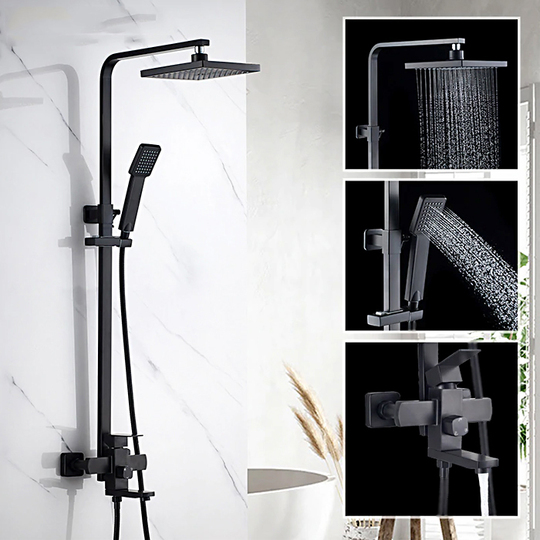 Душевой гарнитур LEDEME с тропическим душем и смесителем черный L72433B